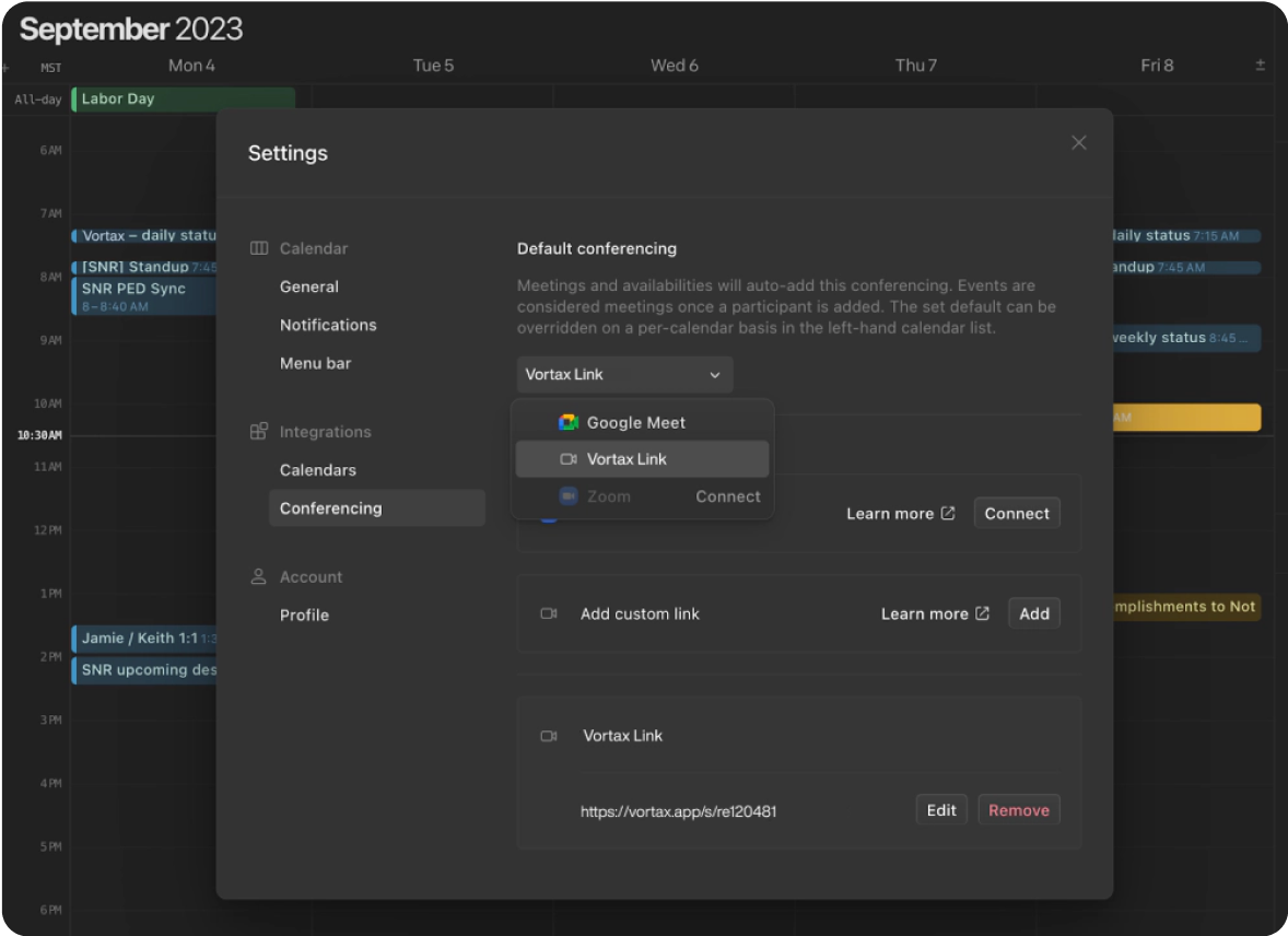 Auto-add ALXCALL meetings to VimCal events. A Google Calendar event will be created when someone books a meeting with you. Participants can join your ALXCALL meeting from the event.